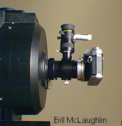 For manual guiding, the use of an offaxis guider is recommended (see above image). An off axis guider fits between the telescope and the camera.. A 9mm or 12mm illuminated reticle is inserted in the off axis body. The operator then finds a bright enough star close to the object, centers it in the cross hairs/bullseye and keeps the star centered using the hand controller during photo aquisition. Finding a guide star while keeping the object to be photograped centered in the imaging telescope can be challenging.