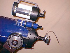 Electronic guiding uses a CCD (charged coupled device) to guide the telescope such as the SBIG ST4 Imager/Tracker shown. This device tracks a star electronically and pulses the telescope with extreme accuracy producing sharp images and pinpoint stars. This is a stand alone guider and does not require a computer, however, coupled to a computer it can be used as an imaging camera. The CCD imager/tracker is very sensitive and can guide on very faint stars that could not otherwise be guided visually.