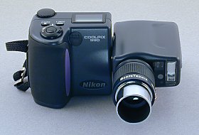 The Nikon Coolpix 990 camera swivel design is very convent for using it on the telescope. |