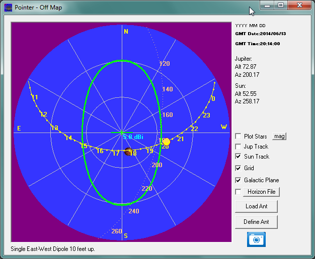 - The Sun radio emission is the light blue to green-yellow color in the top blue spectrogram window.