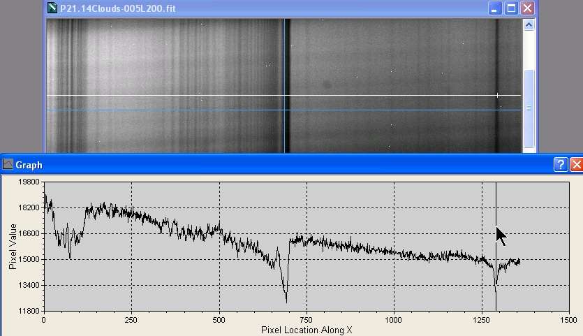 - The white dots in the spectrum image are the hot pixels. Dark calibration will remove them.