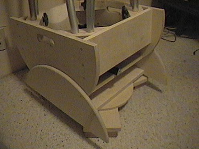 Figure 2 is the groundboard/azimuth bearing assembly. This allows use of the scope until the equatorial platform is designed and made. It's not quite finished here, but should be completed tonight or tomorrow. (3/5-6/02)