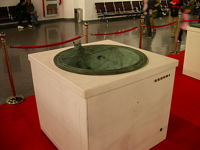 Ancient Chinese up-facing instrument for measuring the position of the Sun in the Celestial Globe