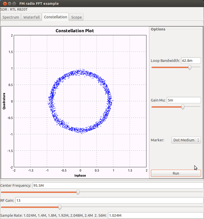 GNU Radio FMstationsRTL.py Program Constellation (IQ: Inphase versus Quadrature) Plot